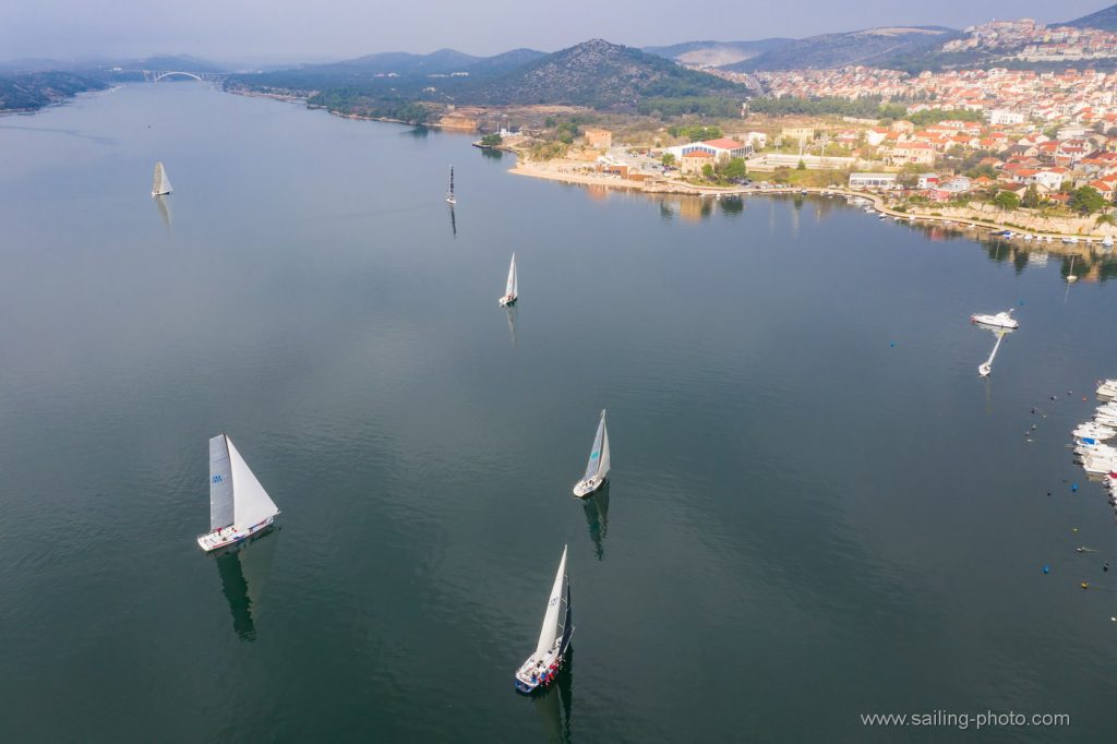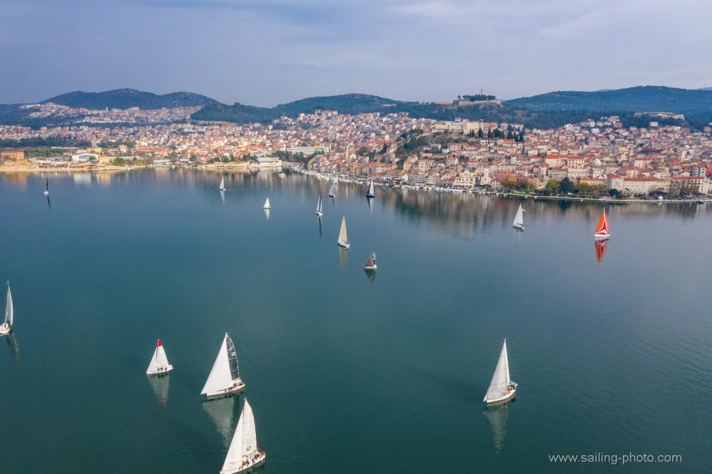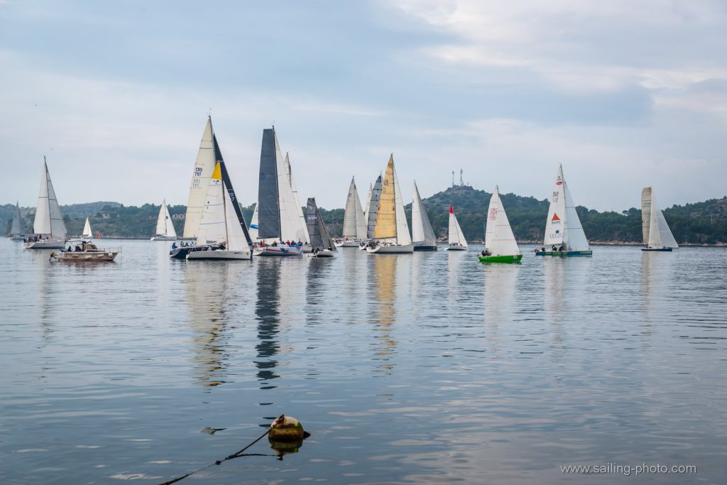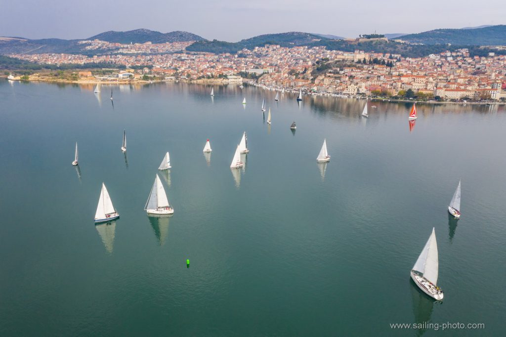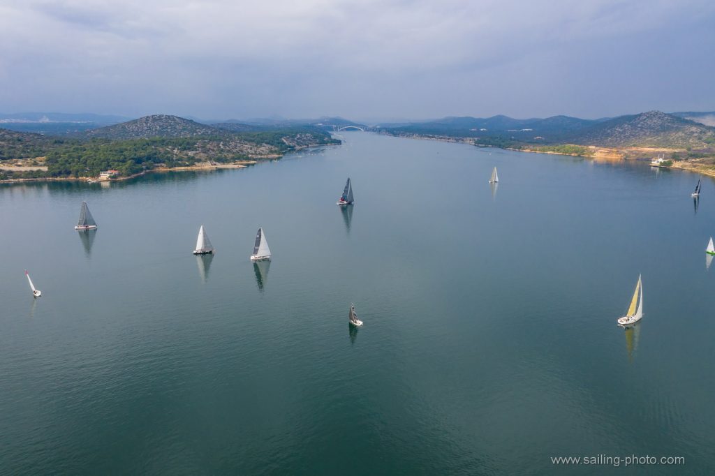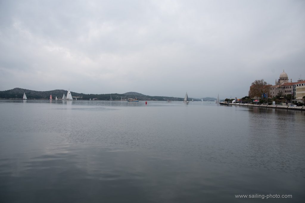 Ispred Šibenske rive startalo je 29 jedrilica u smjeru Šibenskog mosta.Jedrilo se po vrlo slabom vjetru, bonaci i jakim kontra kurentom, te obilnoj kiši. Na trenutke je zapuhalo 6 do 8 čv vjetra sjevernog smjera.