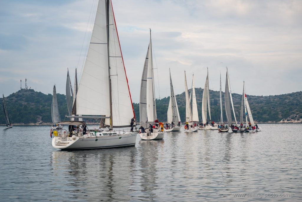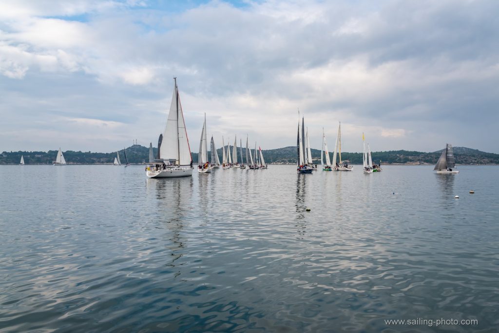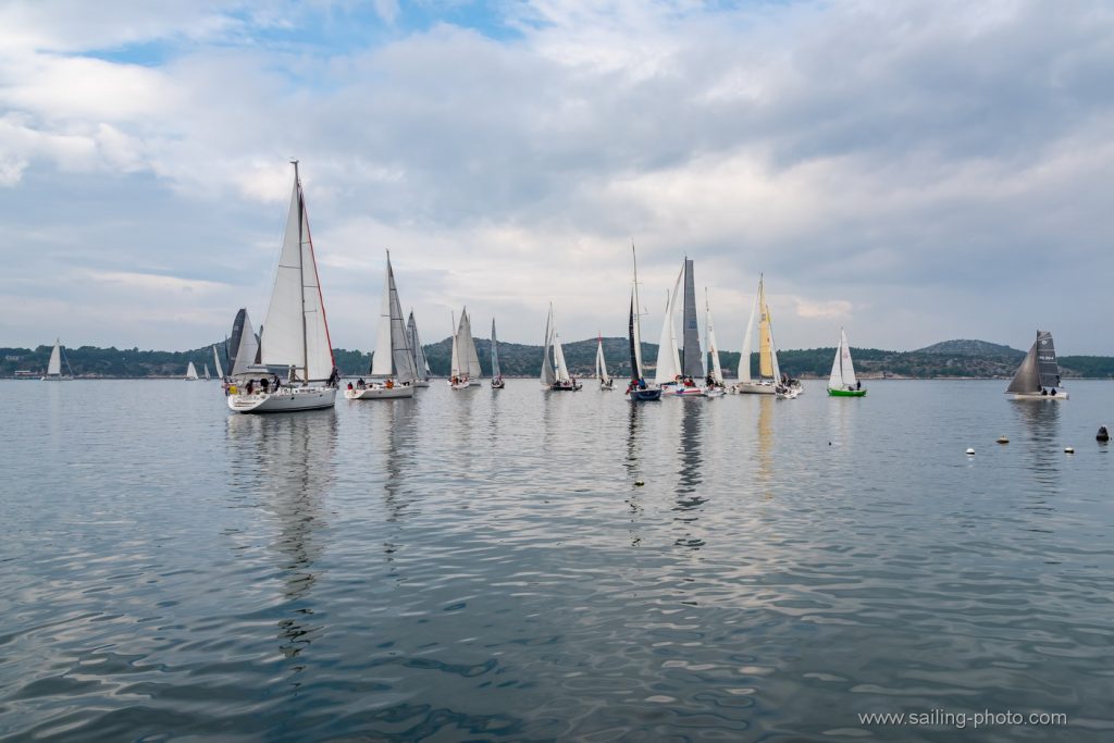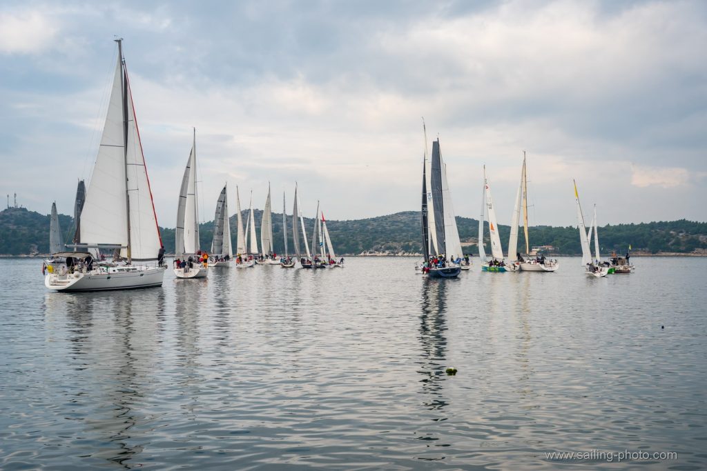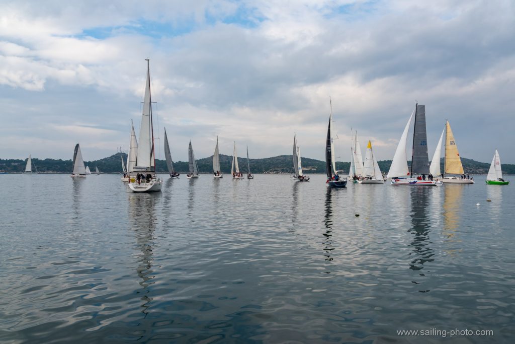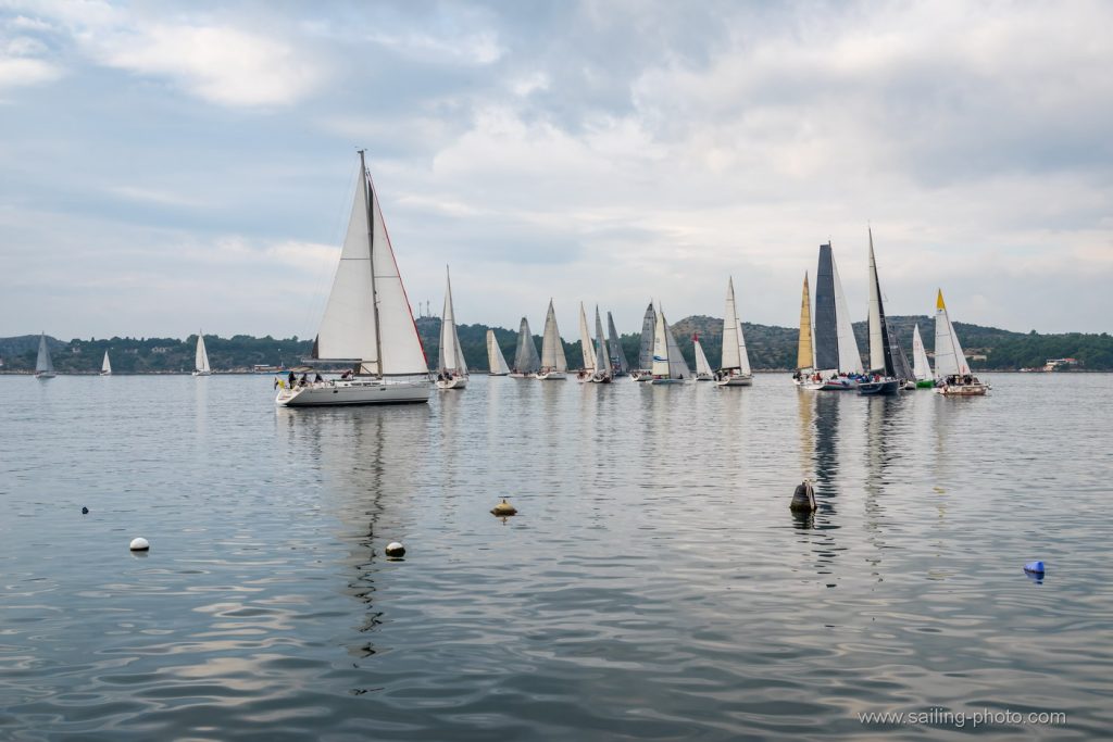 Ispred Šibenske rive startalo je 29 jedrilica u smjeru Šibenskog mosta.Jedrilo se po vrlo slabom vjetru, bonaci i jakim kontra kurentom, te obilnoj kiši. Na trenutke je zapuhalo 6 do 8 čv vjetra sjevernog smjera.