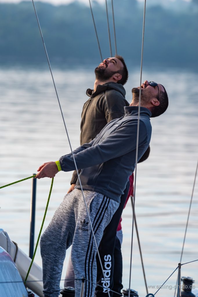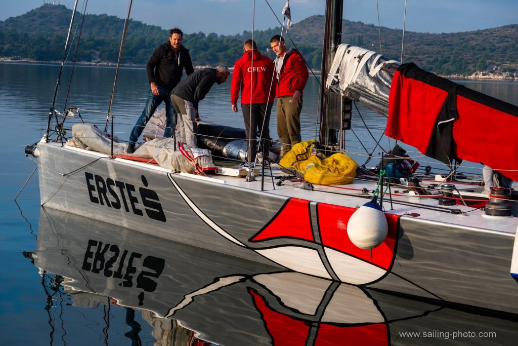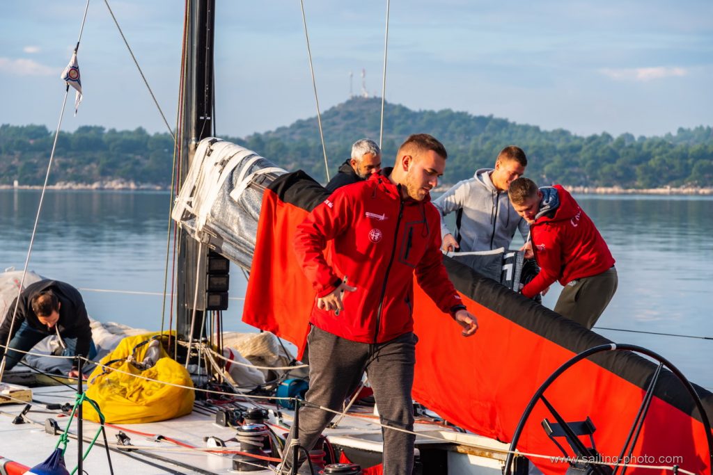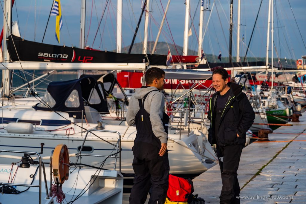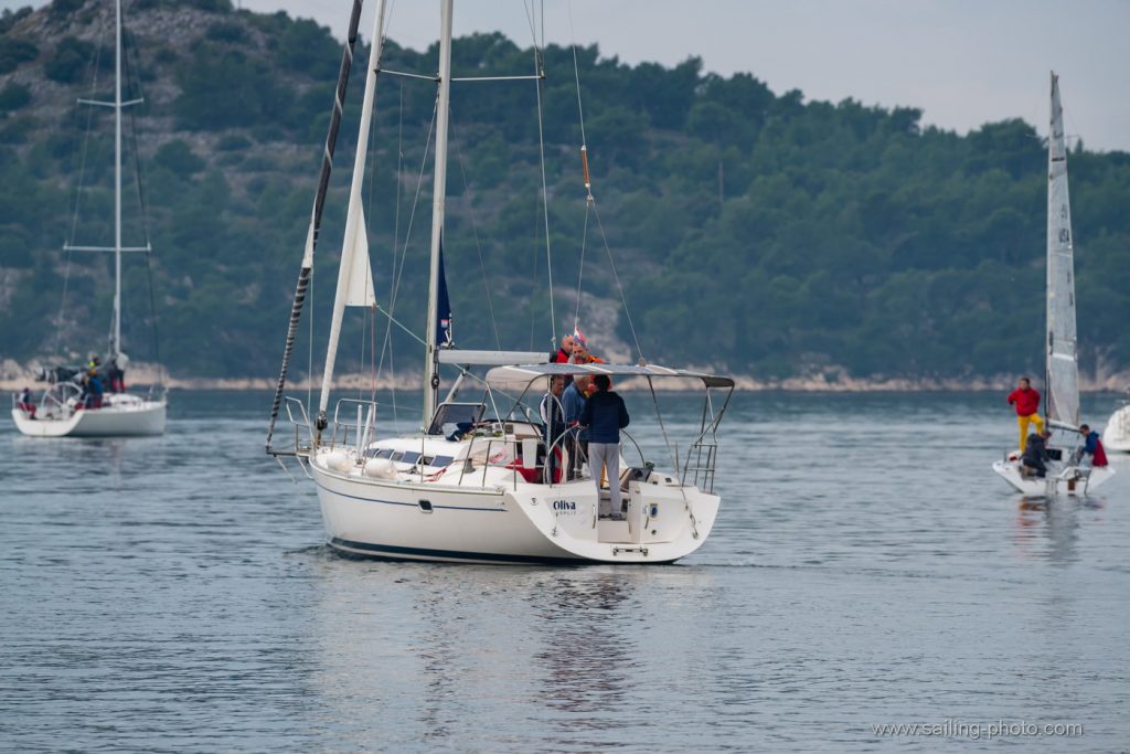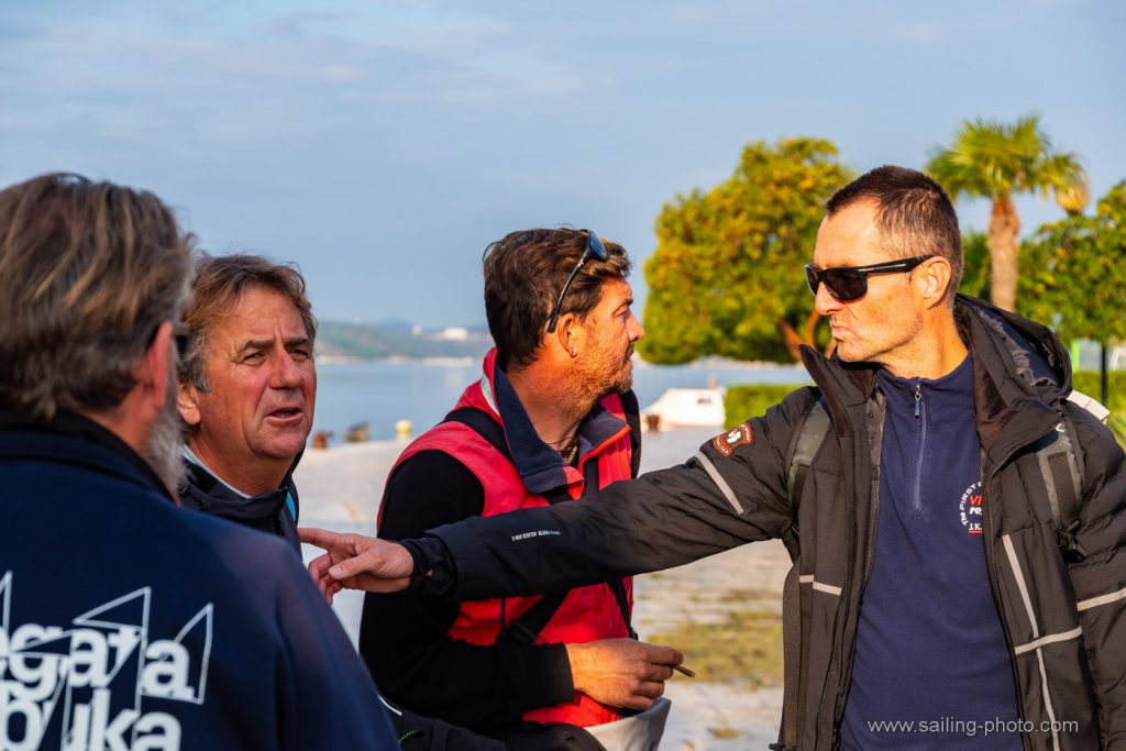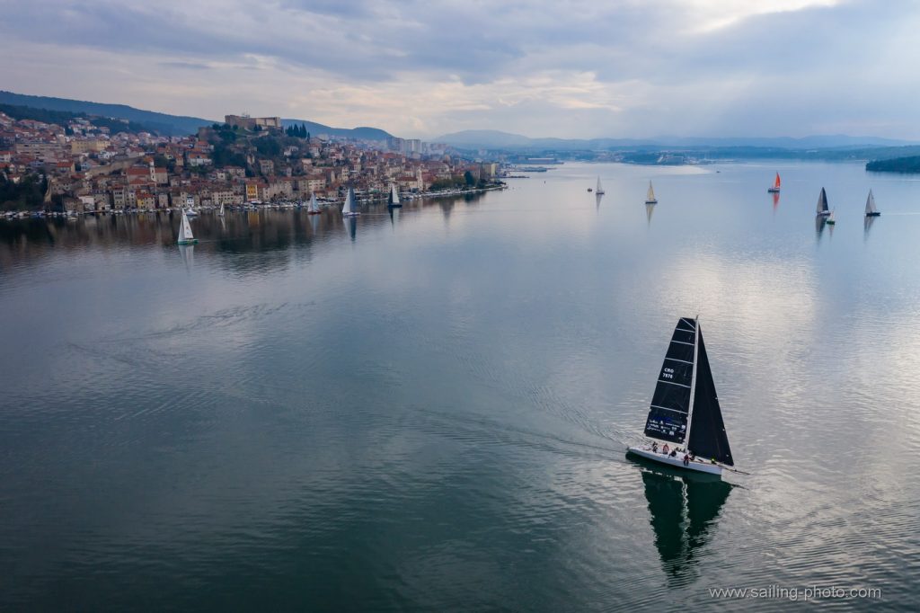 “Tradicionalni uvjeti za šibensku regatu i ove godine,na startu lagani vjetar sjevernog smjera uz laganu kišicu. Mi smo startali sa broda bliže gradu u nešto manjem kurentu ali smo zaglavili ispod dva broda , trebalo nam je malo vremena da se izvučemo na čisto. Ostali su malo bolje startali sa sredine i pina. U nastavku su se Mate i Furiosa dosta odvojili, kasnije se vjetar malo stabilizirao ali je kurenat bio iznimno jak na prvoj bovi. Zbog toga kurenta je krma bezbolno prošla. Držali smo se više zapadne strane gdje je kutenat bionešto jači. Na drugoj bovi dočekala nas je jaka kiša i nešto više vjetra 7- 8čv koji je popunio cijelo polje na kraju smo završili treći iza Furiose i Fatamorgane.”